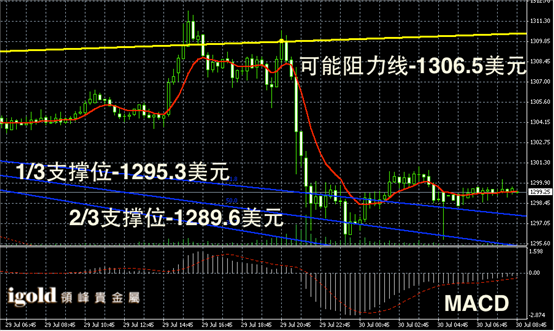 技术回顾:我们在昨晚的评论中,特别提醒投资者市场最终会以回落收场,市场的运行与我们的预测完全一致。其中金价向1300美元靠拢的趋势,也被我们言中。