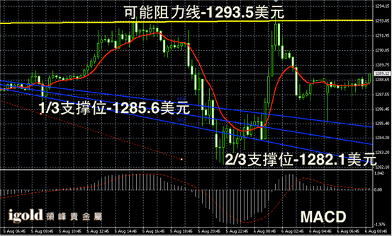 黄金阴阳烛录得U型反弹明显,显示1280美元附近支撑较为牢固,同时再次反弹1293美元附近时,回落速度加快,整体运行区间或在1285-1294美元区间。末端柱体收短,短线MACD显示多空反复,金价或继续在1289美元附近持稳。