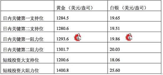 技术回顾:早评中,我们特别论证指出金银价格或小幅持稳后回升,上午走势与我们预测完全一致,且高位阻力线上我们也给出了精准的预测。