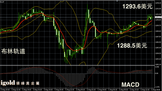 黄金布林道中线小幅上,且柱体高于均线,短线MACD示弱头主导,下午金价或继续看涨至1293美元,随后或回落围绕1290美元附近震荡。