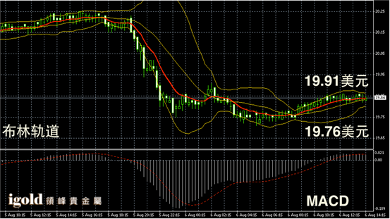 阴阳烛录得柱体收短,且布林道收窄,均线小幅持平,白银价格或在19.85美元附近盘整,短线或小幅看涨至19.9美元。