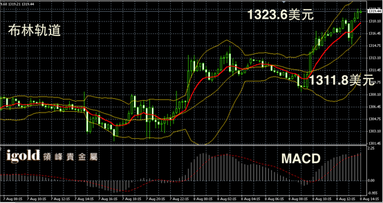 黄金布林轨道录得继续攀升,且阳烛大幅增多,短线MACD显示多头主导,金价下午或继续小幅攀升至1324美元附近,后期或回落至1320美元附近持稳盘整。