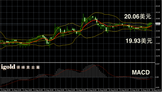 白银阴阳烛录得布林轨道区间收窄,均线整体收平,柱体录得较短,短线MACD显示呈中性,白银价格或在20美元附近持稳,并向20.05美元附近靠拢。