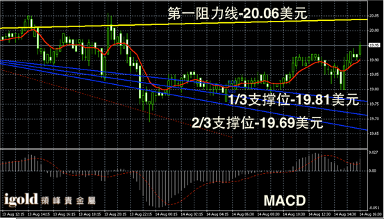 白银阴阳烛录得阳烛增多,不过柱体仍然较短,显示反弹动力不足,短线MACD显示弱势多头主导,后期白银价格或冲击20美元。