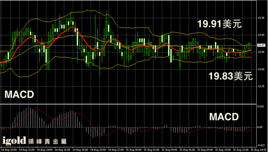 白银阴阳烛录得柱体较短,且布林轨道仍旧较窄,横盘运行趋势明显,短线MACD显示呈中性,后期白银价格或继续围绕19.8美元上下盘整。