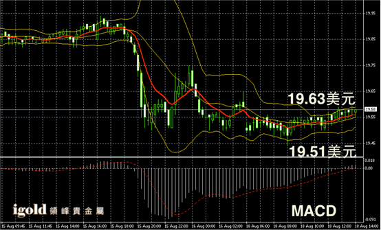 白银阴阳烛录得布林轨道收窄,但是中线却小幅上扬,整体阳烛较多,白银价格下午或小幅攀升至19.63美元附近。