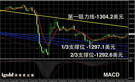 黄金阴阳烛录得柱体收短,且聚焦明显,末端柱体录得小幅高于红色日均线,短线MACD显示呈中性,黄金价格或小幅上探至1303美元附近,若美指上扬,金价或承压走跌。