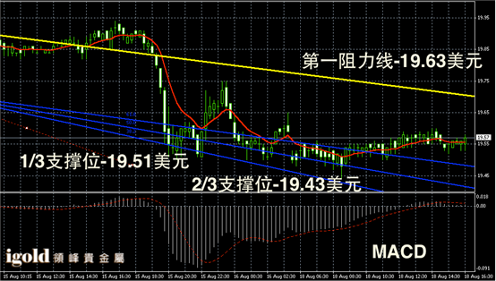 白银阴阳烛录得聚焦明显,整体处于日均线中位,短线MACD显示呈中性,白银价格晚上或继续小幅攀升至19.63美元附近。