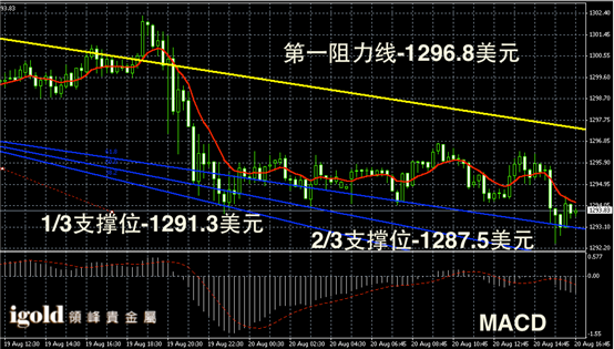 技术回顾:午评中,我们建议投资者留意金价能否持稳1295美元,且指出若跌破或小幅下探。下午的趋势,与我们的预测基本相符。