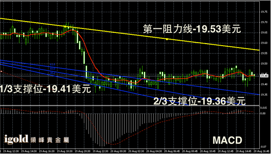 白银阴阳烛录得阴阳烛间隔出现,且处于日均线中位,短线MACD显示呈中性,后期白银价格或继续浮动在19.45美元附近。