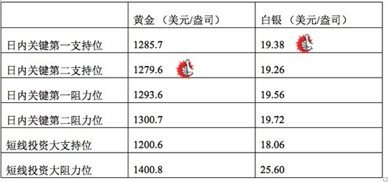 日内关键第一阻力位 | 1285.6 | 19.43 |