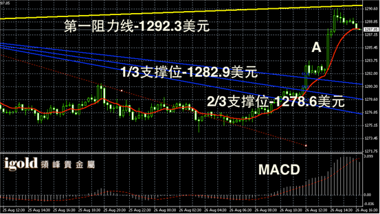 黄金阴阳烛录得攀升后,柱体小幅回落,末端录得阴烛,短线MACD显示多头主导,未来建议关注阳烛A的高低价,若持稳阳烛A的高价1287美元或进一步看涨至1292美元附近;若跌破则可能向1285美元附近回调。