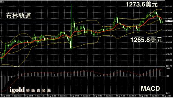 黄金阴阳烛录得柱体高低交叉于红色日均线,布林轨道小幅攀升后整体收平,短线MACD显示弱势多头主导,黄金价格下午或首先持稳1268美元,并逐渐向1271美元附近靠拢。建议以1268美元为短线多空分界指标。
