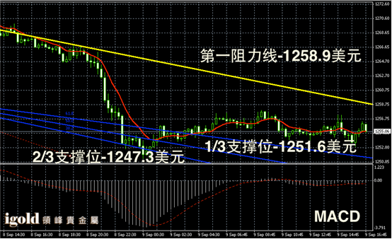 黄金阴阳烛录得柱体较短,区间盘整趋势明显,短线MACD显示呈中性,黄金价格后期或继续跟踪美指,若突破1258美元,则可能小幅攀升,否则或继续横盘整理。