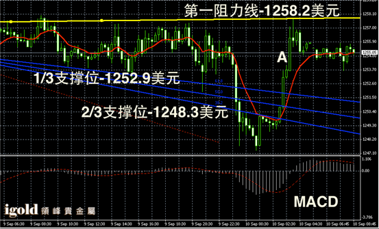 黄金阴阳烛录得出现U型反弹,显示市场在1255美元附近支撑较强,不过末端录得连续阴烛,且短线MACD显示多空反复,因此未来建议以阳烛A的最低价为参考,若跌破或继续下行。