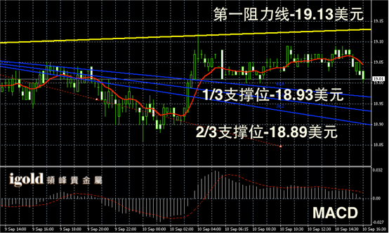白银阴阳烛录得柱体较短,后期低于红色日均线,短线MACD显示弱势空头主导,白银阴阳烛录得或继续围绕19美元附近整理。