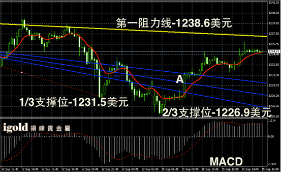 黄金阴阳烛录得攀升后,柱体收短,整体处于红色日均线中位,短线MACD显示多头主导,未来黄金价格或继续攀升,若突破1238美元则可能继续反弹,否则或回落盘整,低位支撑可参考阳烛A的最低价,即1231美元,若跌破或继续下行。