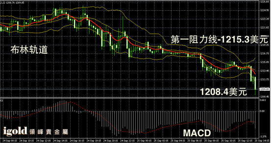 技术回顾:早评中,我们判断美指若继续持稳上探,金价会小幅下探至1211美元附近,这一判断与上午的走势相符。