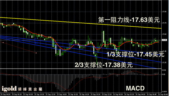 白银阴阳烛录得区间盘整趋势明显,柱体聚焦明显,整体处于红色日均线中位,短线MACD显示呈中性,白银价格在17.5美元附近持稳后或向17.6美元附近反弹。