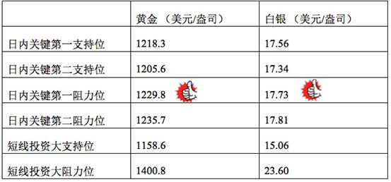 在支持位和阻力位上,可参考以下数据