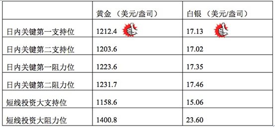 午后摘要:因为美元指数下午的反弹,所以金银价格进一步承压,再次回落。现货黄金价格从1217美元附近下行至1213美元附近震荡,现货白银价格则从17.25美元附近回落至17.1美元附近整理。美元指数录得从85.5附近攀升至85.7,欧元报价从1.27美元滑落至1.26美元。下午,欧元区消息面较少,投资者选择离场观望,以等待晚上欧洲央行的会议决议。