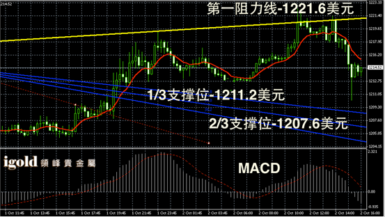 技术回顾:午评中,我们指出金价若跌破1215美元可看跌至1213美元附近,这一预测与下午的趋势一致。