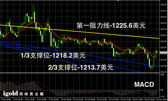 黄金阴阳烛录得下行后反弹,但是短线MACD显示空头仍然主导,因此晚上一定要谨防黄金价格再次下探1220美元,美指若不断反弹,金价收盘或有所滑落。