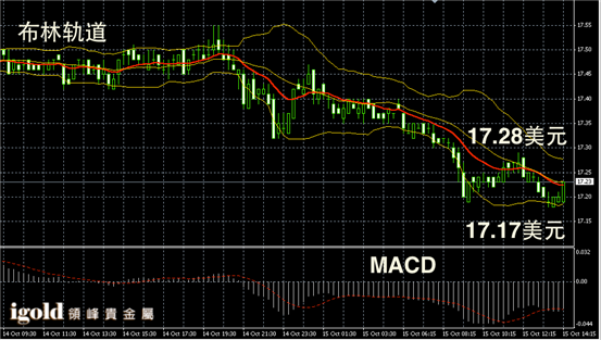 白银阴阳烛录得离散率加大,布林轨道收平,短线MACD显示弱势空头主导,白银价格或小幅上探17.25美元附近,随后偏于横盘运行。
