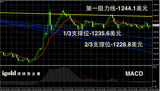 黄金阴阳烛录得聚焦明显,整体处于红色日均线中位,短线MACD显示弱势空头,黄金价格建议参考1238美元,美指反弹则偏于跌破这一支撑,否则或继续在1238-1243美元区间震荡。
