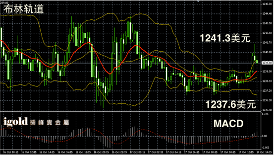 黄金阴阳烛录得末端布林轨道变宽,且柱体小幅高于红色日均线,短线MACD显示多头小幅增加,黄金价格下午或小幅上探1240美元附近,随后则偏于回落至1238美元附近震荡。