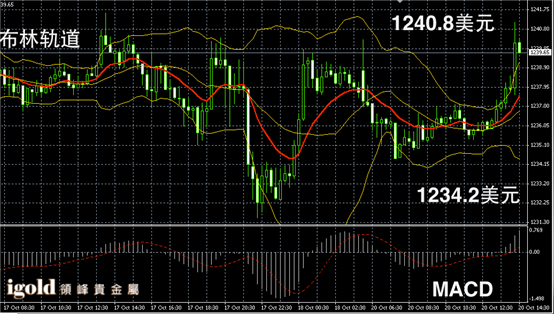 黄金阴阳烛录得阳烛增多,且高于红色日均线,布林轨道录得小幅上扬,且区间扩大,短线MACD显示多头增加,黄金价格下午或在1235-1240美元区间盘整,若突破1241美元,或小幅看涨至1243美元附近。