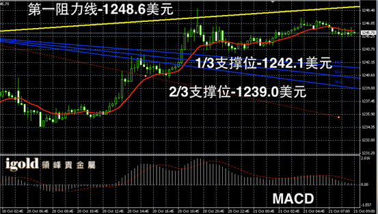 技术回顾:晚评中,我们指出金价在持稳1240美元后,会继续小幅上探,且给出了具体的反弹目标,这些都与昨晚的走势保持一致。