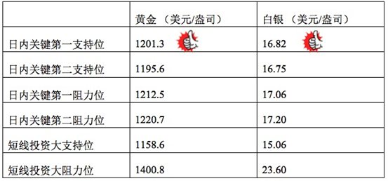 在支持位和阻力位上,可参考以下数据