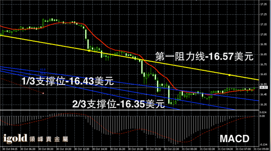 白银阴阳烛录得大幅下跌后,开始回调,后期柱体收短,处于日均线中位,短线MACD显示呈中性,白银价格日线或围绕16.5美元附近整理。