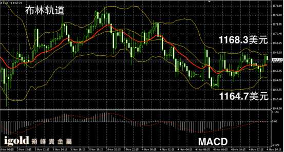 黄金阴阳烛录得小幅高于红色日均线,但是柱体较短,反弹动力不足,短线MACD显示呈中性,黄金价格下午或主要浮动在1167美元附近,若跌破1166美元,或小幅下探1164美元。持稳则偏于反弹至1168美元,突破可能继续小幅上涨至1170美元。