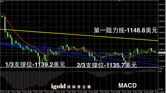 黄金阴阳烛录得柱体不断收短,且整体处于红色日均线中位,短线MACD显示弱势多头主导,黄金价格晚上或暂时持稳1144美元附近,待欧银决议公布后,再随美指波动而进行调整。