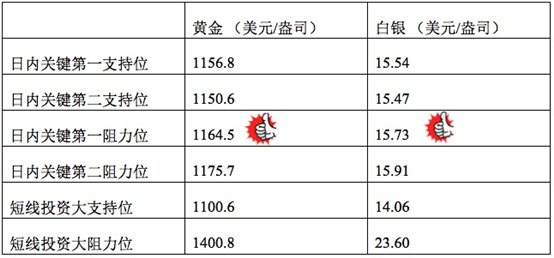金银长线阴阳烛录得仍旧低于红色日均线,黄金和白银长线RSI均录得31,趋势收平。日线黄金柱体录得较短,且聚集在红色日均线中位,白银横盘运行趋势也较为明显。日线金价或在1158-1165美元区间波动,低位密切留意1157美元,一旦跌破或回落至1152美元附近;白银价格偏于在15.7美元附近盘整。