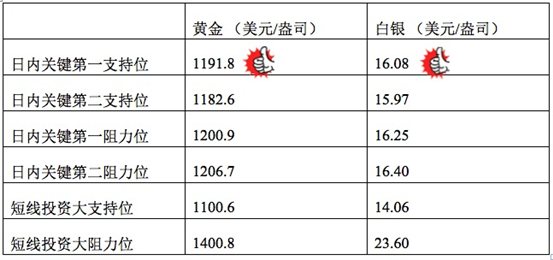 在支持位和阻力位上,可参考以下数据