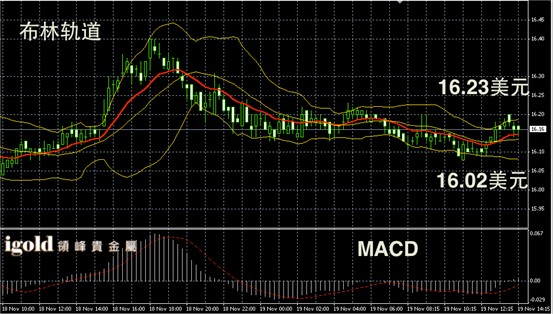 白银阴阳烛录得离散率较高,柱体高低交叉于红色日均线,布林轨道录得区间收窄,短线MACD显示呈中性,白银价格下午或继续围绕16.15美元进行盘整。持稳后或不断突破16.2美元。