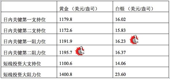在支持位和阻力位上,可参考以下数据