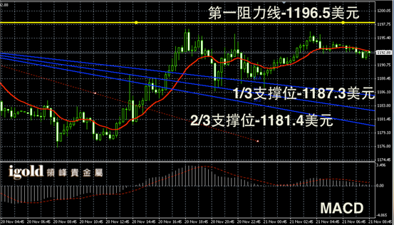 技术回顾:昨晚的评论中,我们特别提醒投资者密切留意1186美元,指出金价一旦突破并会向1192美元附近靠拢。这一判断与昨晚的走势完全一致。