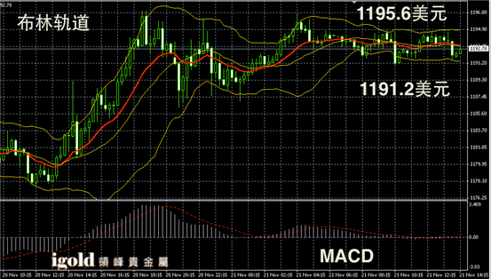 黄金阴阳烛录得布林轨道收平,短线MACD显示呈中性,柱体录得较短,黄金价格短线横盘运行趋势明显,金价下午或继续在1192美元附近整理,若美指回落至87.5附近,金价或尝试突破1196美元。