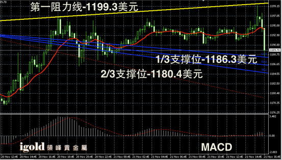 技术回顾:午评中,我们明确指出金价会尝试突破1196美元,这一判断与下午的走势完全相符。