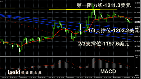 数据方面,昨晚美国商务部公布了11月份私营企业ADP就业数据录得20.8万,低于市场预期的22.2万,也低于10月份的就业人数。市场预期周五非农数据或录得也收平,因此金价并没有因此承压回落。