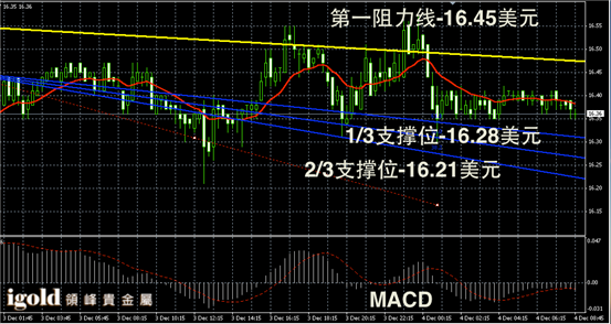 白银阴阳烛录得横盘运行趋势明显,柱体录得较短,短线MACD显示多空反复,白银价格上午或不断持稳16.4美元,低位支撑若跌破16.35美元,或进一步滑落,否则偏于小幅上探。