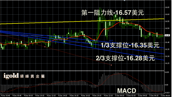 白银阴阳烛录得高低徘徊后,末端柱体收短,短线MACD显示弱势空头主导,白银价格上午或不断持稳16.45美元。