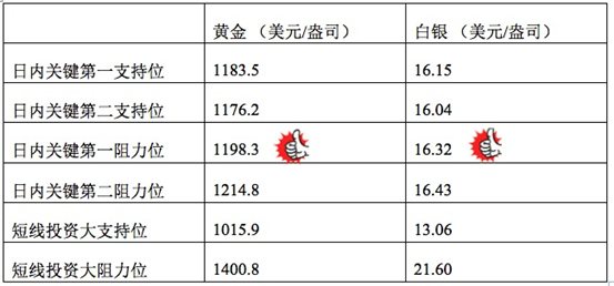 在支持位和阻力位上,可参考以下数据