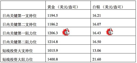 在支持位和阻力位上,可参考以下数据
