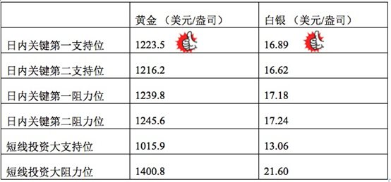 昨日概括:贵金属市场昨晚继续波段震荡,且多次下探低位支撑。国际金价昨晚从1234美元附近下行至1226美元附近,低位时来到了1224.6美元附近,随后则再次回升至1230美元;国际银价则一直浮动在17.1美元上下。美元指数录得则从89.3附近下行至87.9,欧元报价录得1.24美元。