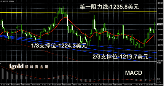 技术回顾:昨晚的评论中,我们提醒投资者留意低位支撑,并且指出黄金价格会不断下探1227美元附近。这一判断与昨晚的走势相符。